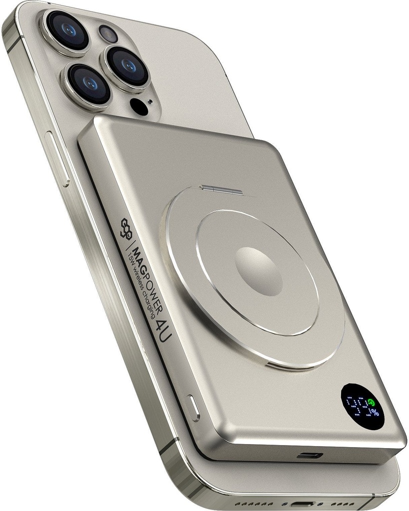 EGO MAGPOWER 4in1 10000mAh Qi2 Magsafe Powerbank ultra-thin, Watch fast Charging, OLED Display, USB-C port in & out,-Titanium
