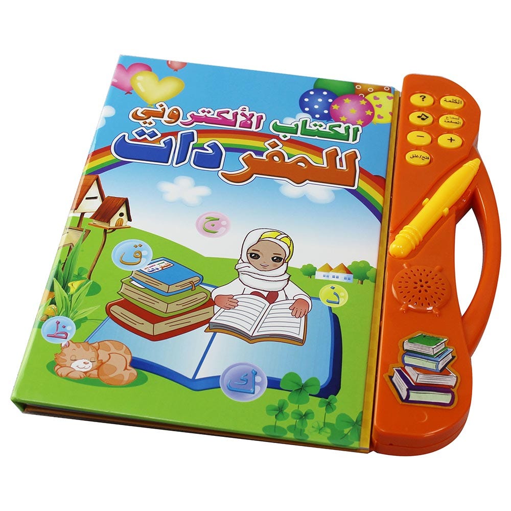 Electronic Book for Children - Arabic contains eight educational pages to pronounce letters and words; and a charset of letters and numbers within each page which is suitable for beginners by learning