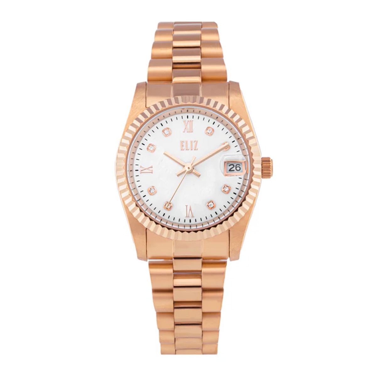 Eliz Round 31mm White Dial Rose Gold Stainless Steel Band Watch For Women - ES8907L1RBB