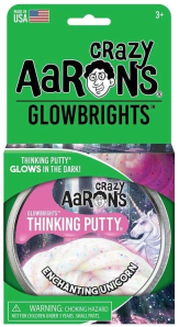 A mythical symbol of beauty and strength, the unicorn has fascinated people throughout the ages.Believe in magic with Enchanting Unicorn Thinking Putty.It charms with a rainbow of neon confetti, shines with golden glitter, and glows a pretty pink in the dark.Thinking Putty helps build hand and finger strength through a fabulous tactile play experience with unique, unexpected properties and provides relaxing, yet stimulating interaction for anyone with sensory integration issues.Crazy Aaron’s putty is non-toxic, won’t dry out, and won’t leave a sticky or slippery residue on your fingers, so it’s great for stretching, molding, bouncing, tearing, popping and playing by kids and adults alike.