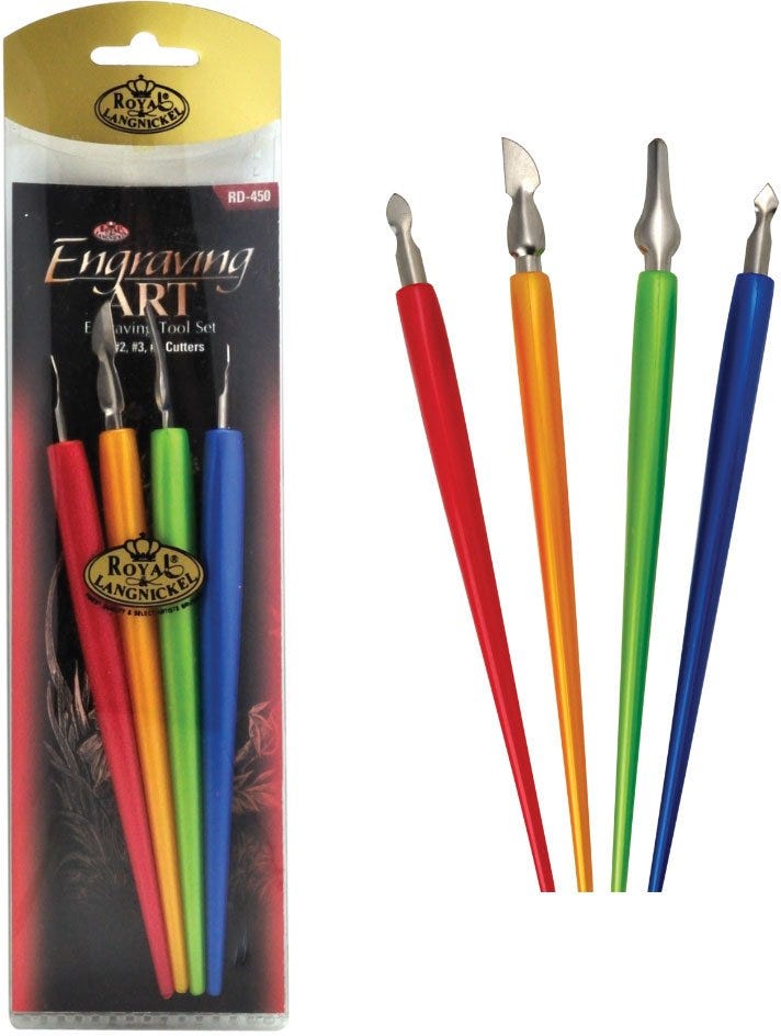 Engrave your own beautiful masterpiece with our Engraving Art Tools! These handy tools are used to scrape away the top layer of an Engraving Art board (not included).This set contains 4 engraving too