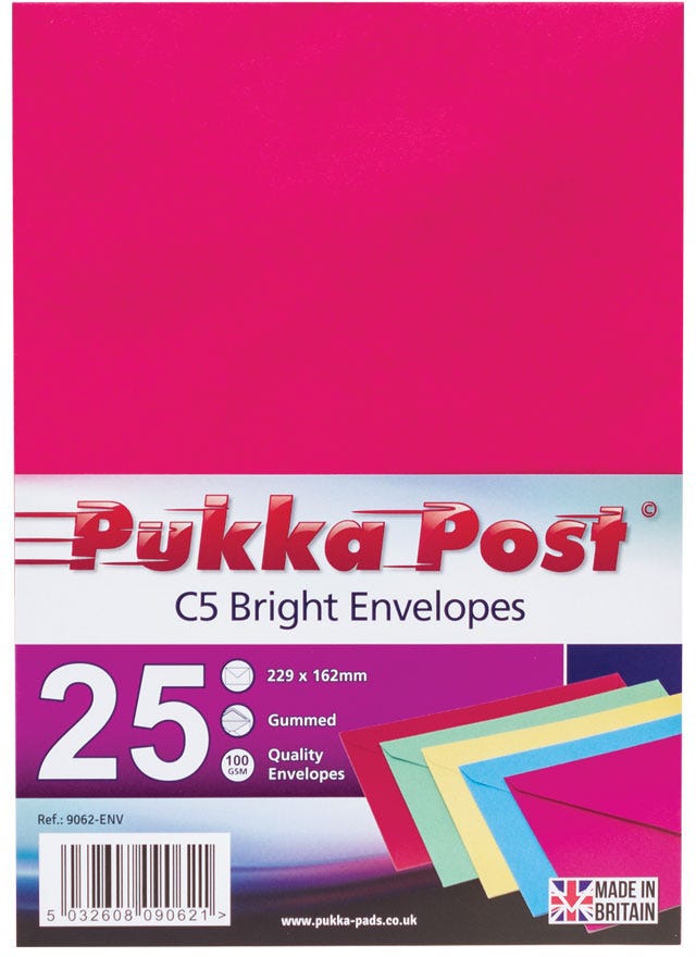 These Creative Colour envelopes Assorted bright color are perfect for invitations, announcements, business mailings and so much more.With a secure Peel and Seal strip and crafted from luxurious thick paper, these envelopes will ensure that your mail stands out and arrives perfectly every time.Available in a wide spectrum of colours, from Jet Black through to Baby Pink, we have the coloured envelope for every theme, season and mailing requirement! Made from 100% recyclable paper.