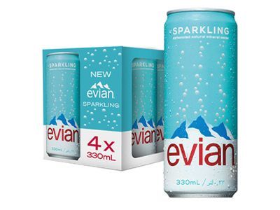 EVIAN SPARKLING WATER CAN 330MLX4