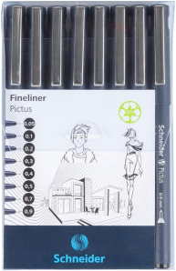 Ideal for drawing, sketching, illustrating and writing Water based, pigmented ink for long lasting bright coloursHigh resistance to fadingWaterproof according to ink standard ISO 14145-2 Metal encased writing tip for durability and precise layouts Available in 8 line widths and 4 colours Suitable for use with rulers and templates Barrel made of 85% recycled plastic.