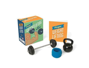 This one-of-a-kind miniature weightlifting set lets you pump some ironwith your fingers!Kit includes:* 1 metal barbell* 4 rubber weight plates* 1 metal kettlebell weight* 1 resistance band* 1 finger sweatband* 32-page mini book