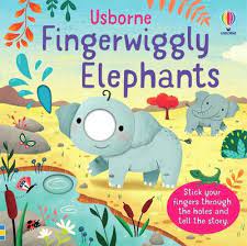 A highly interactive board bookwitha simple rhyming text and die-cut holes that allowchildren's fingers to become elephant trunks ina story about a big and a baby elephant.Very little children and their grown-ups can poke their fingers through the holes to become the trunks of Big Elephant and Baby Elephant and tell a simple story.Baby Elephant learns to reach for leaves to munch, suck up water to drink and to squirt, then takes a walk through the forest before joining the rest of the family at the end of the day for a big elephant cuddle.Rhyming text is fun to read out loud.