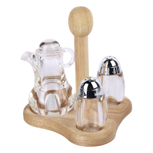 Glass Condiment Set With Stand 3 Pieces Set