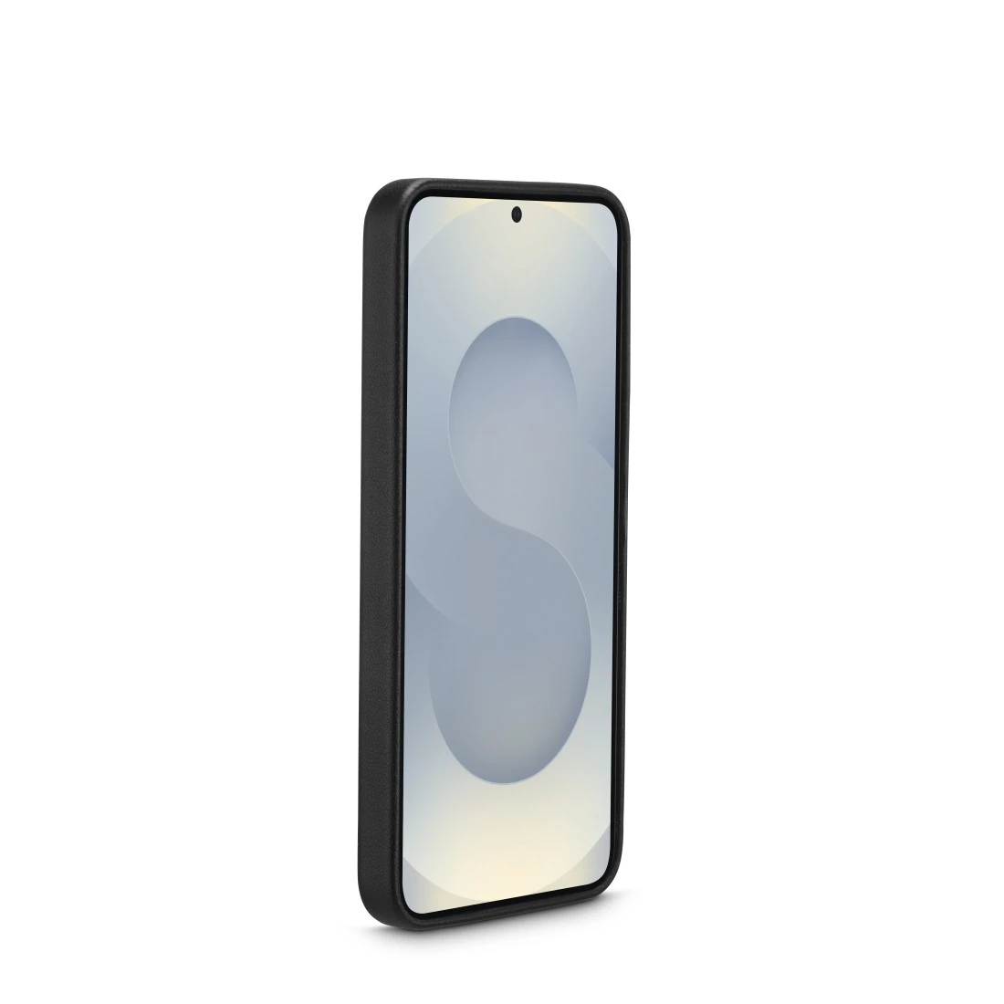 Totally on trend: mobile phone case for an elegant look made of fine faux leather with metal elements for the Samsung Galaxy S25, black