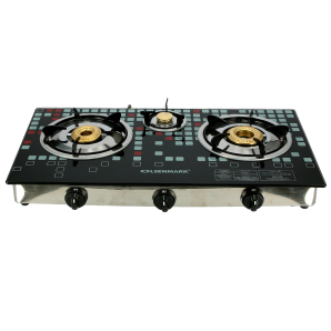 Highly Efficient Tempered Glass Triple Burner Gas Stove with Auto Ignition OMK2224 Olsenmark199.00NovoProduto Limitado