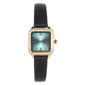 Omax Leather Ladies Watch Gold Black
