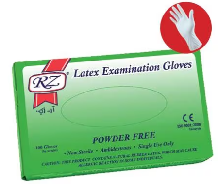 Rz Latex Gloves Powder Free - Large, 100 Pieces
