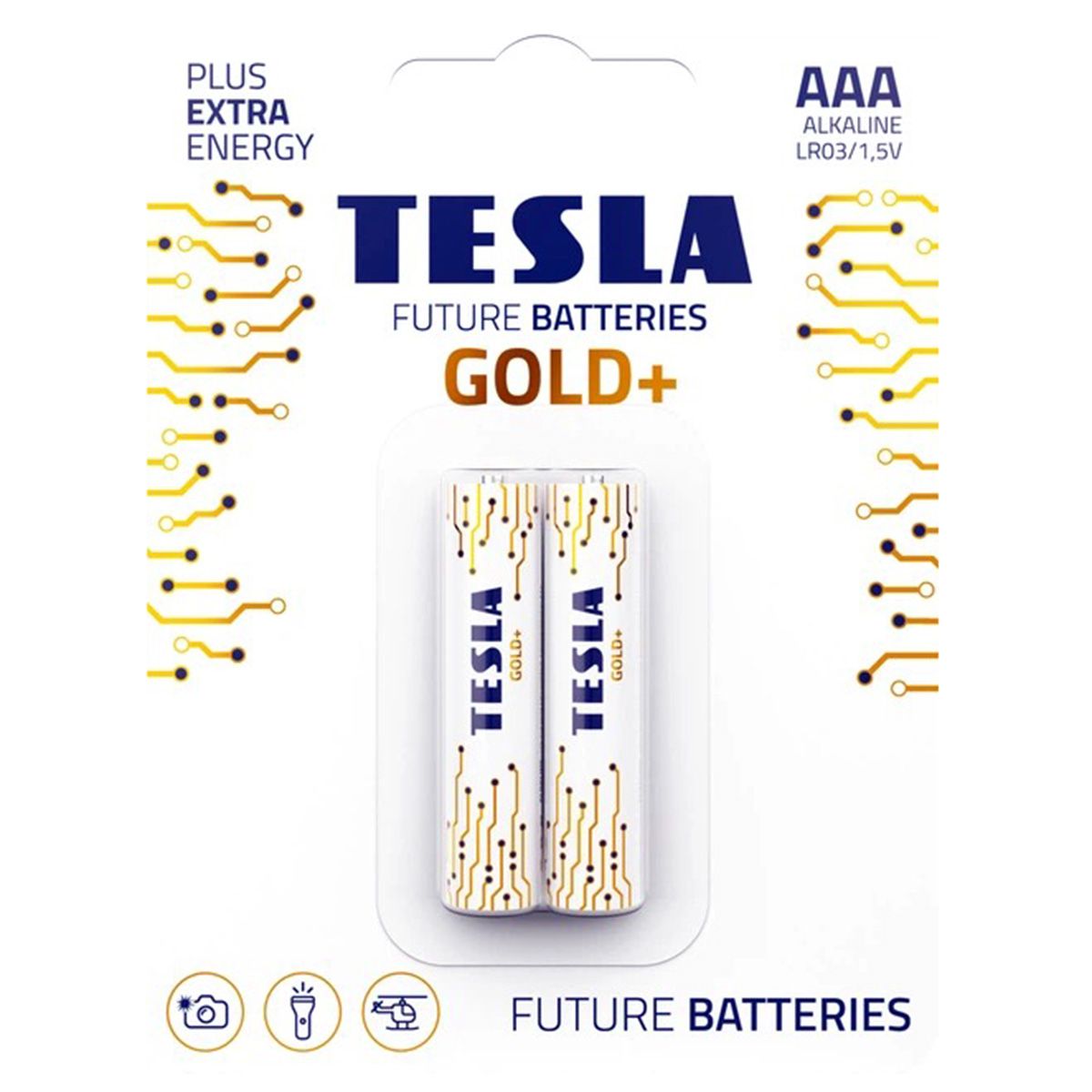 Tesla Alkaline Batteries AAA LR03 Gold 2 Pieces