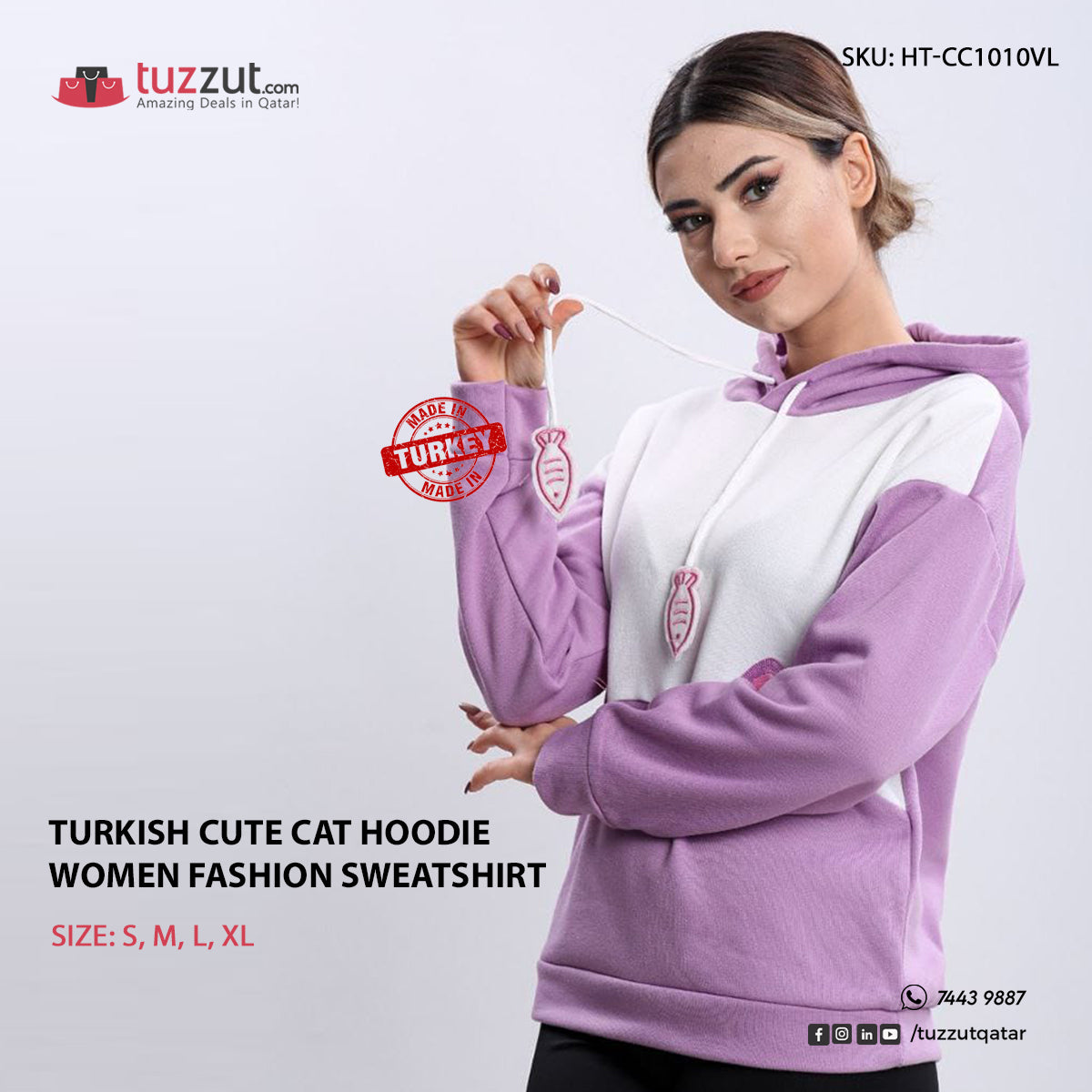 Turkish Cute Cat Hoodie Women Fashion Sweatshirt - Violet PR3149.00NovoProduto Limitado
