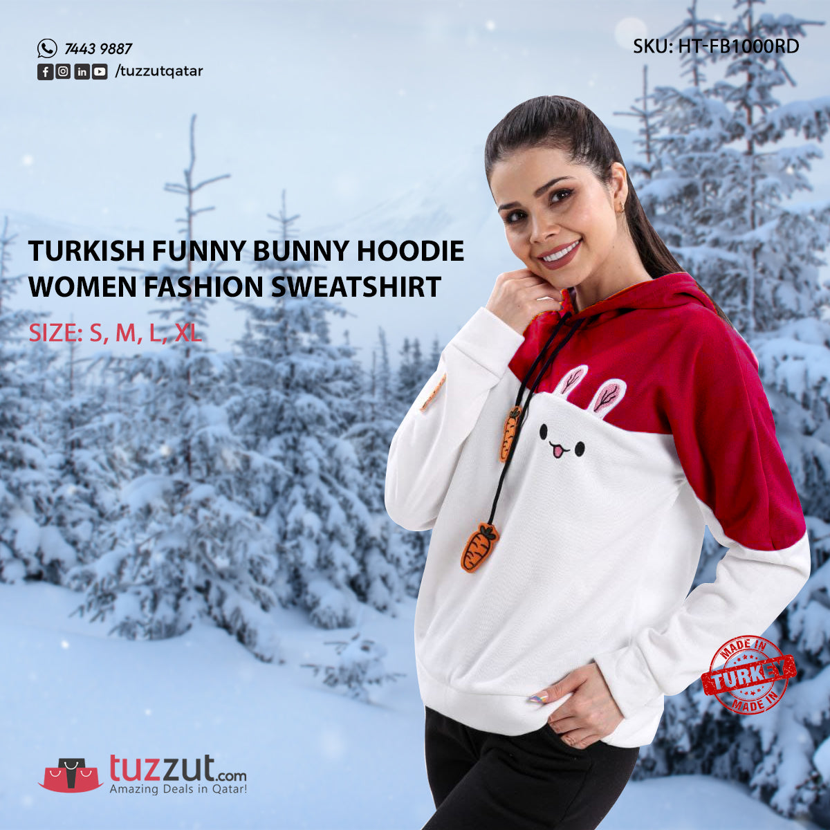 Turkish Funny Bunny Hoodie Women Fashion Sweatshirt - Red PQ2449.00NovoProduto Limitado