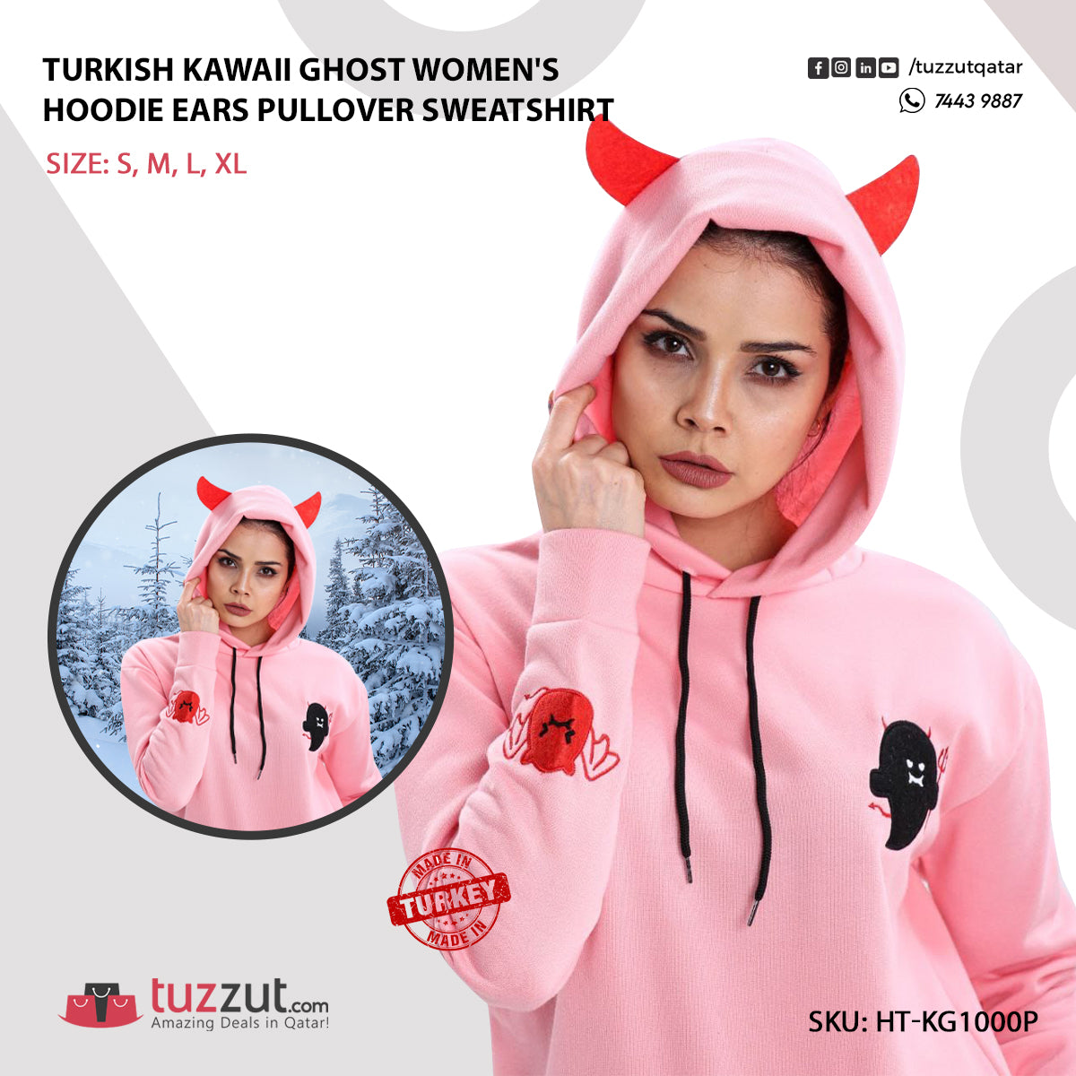 Turkish Kawaii Ghost Women's Hoodie Ears Pullover Sweatshirt - Pink PN0149.00NovoProduto Limitado