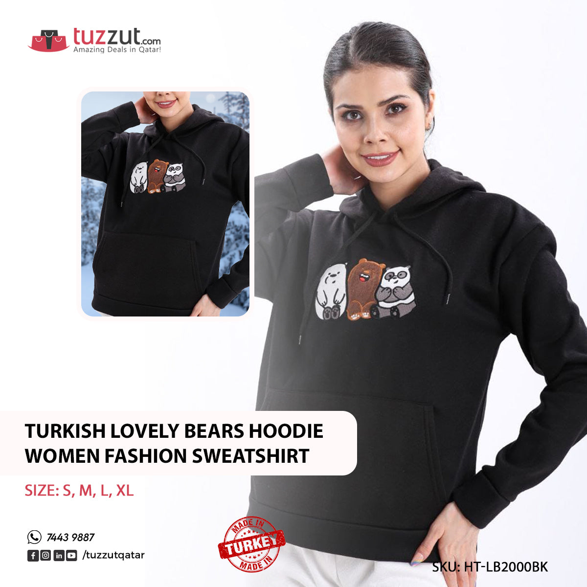 Turkish Lovely Bears Hoodie Women Fashion Sweatshirt - Black PB4149.00NovoProduto Limitado