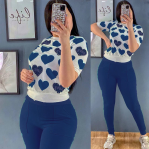Turkish Pearl Decorated Printed Half Sleeve Top & Pant - Blue PT0349.00NovoProduto Limitado