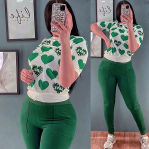 Turkish Pearl Decorated Printed Half Sleeve Top & Pant - Green PT0549.00NovoProduto Limitado