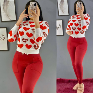 Turkish Pearl Decorated Printed Long Sleeve Top & Pant - Red HZ4579.00NovoProduto Limitado