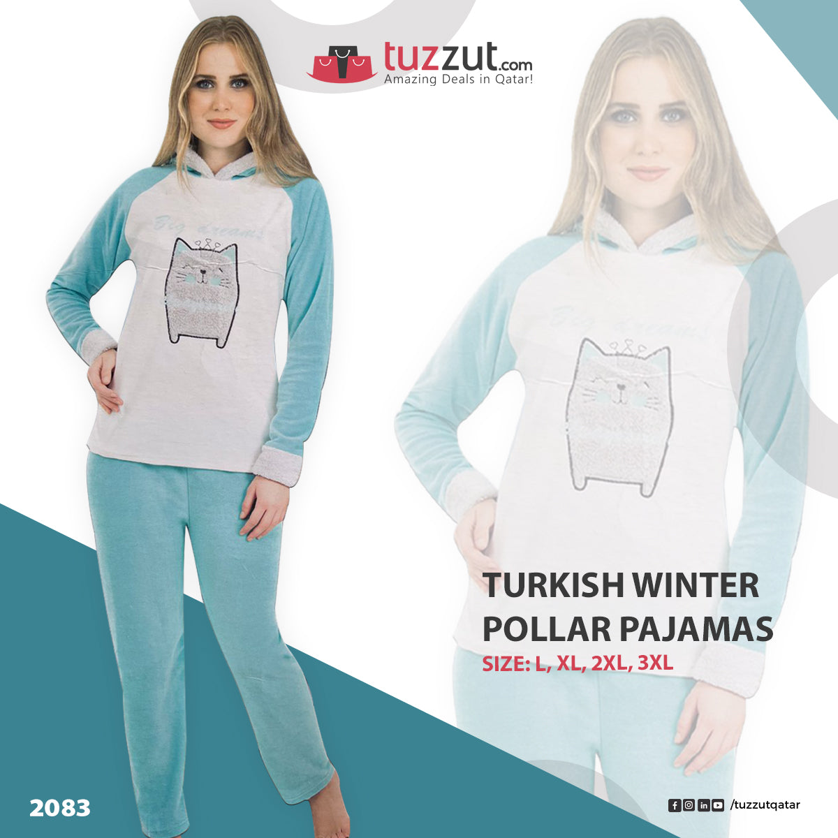 Turkish Winter Polar Pajama Nightwear Homewear - 2083