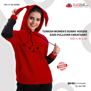 Turkish Women's Bunny Hoodie Ears Pullover Sweatshirt-Red TF3049.00NovoProduto Limitado