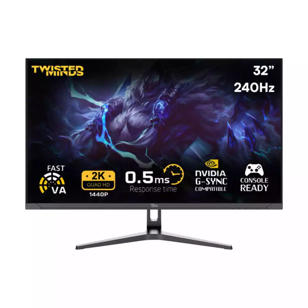 Twisted Minds TM32QHD240VA Supreme Series Gaming Monitor, 32" 2K QHD VA Display, 240Hz Refresh Rate, 0.5ms Response Time, NVIDIA G-Sync Compatible, 16.7M Colors, Black