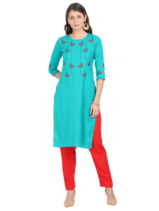 Women Blue cotton embroidered top and Red rayon pant128.00NovoProduto Limitado